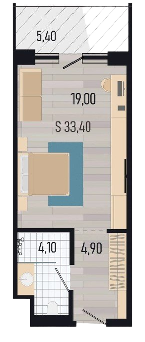 Площадь: 33,4 м2