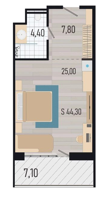 Площадь: 44,3 м2