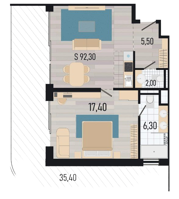 Площадь: 92,3 м2