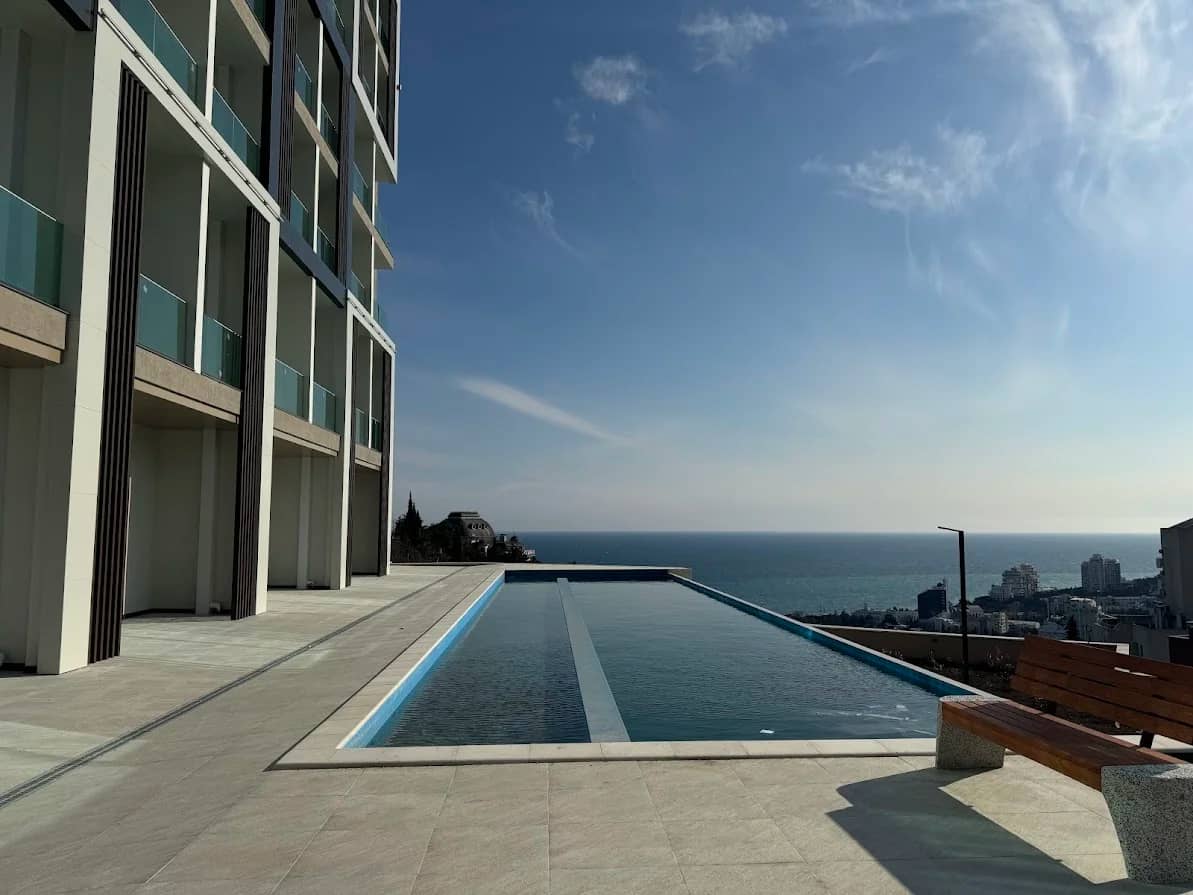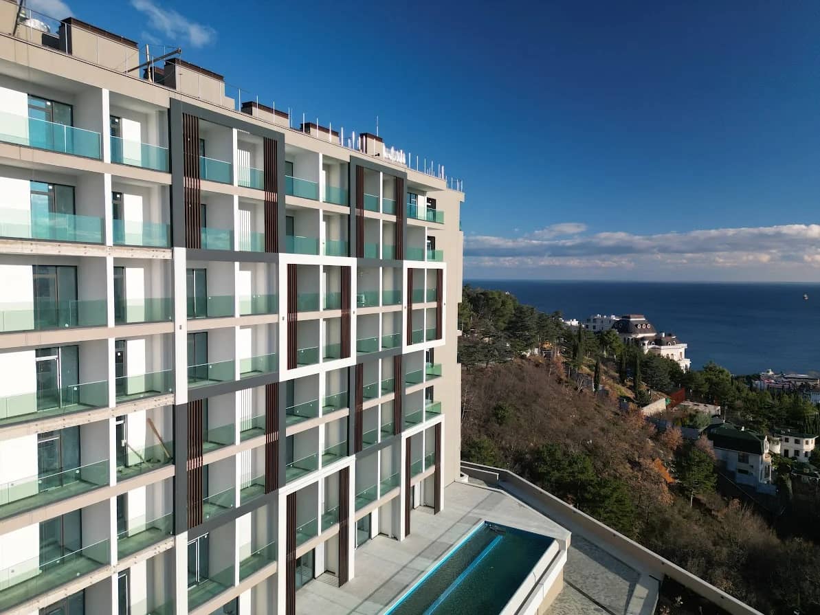 Резиденция для роскошной жизни. На территории «Роялты» — тишина и спокойствие в окружении зелени. Но стоит только захотеть: набережная Ялты — в пяти минутах, а чтобы выехать в мини-путешествие по Большой Ялте нужно всего лишь пару минут — и вы на шоссе. Оазис проекта — бассейн с прозрачной внешней стеной, где кристальная вода сливается с горизонтом, создавая иллюзию бесконечности