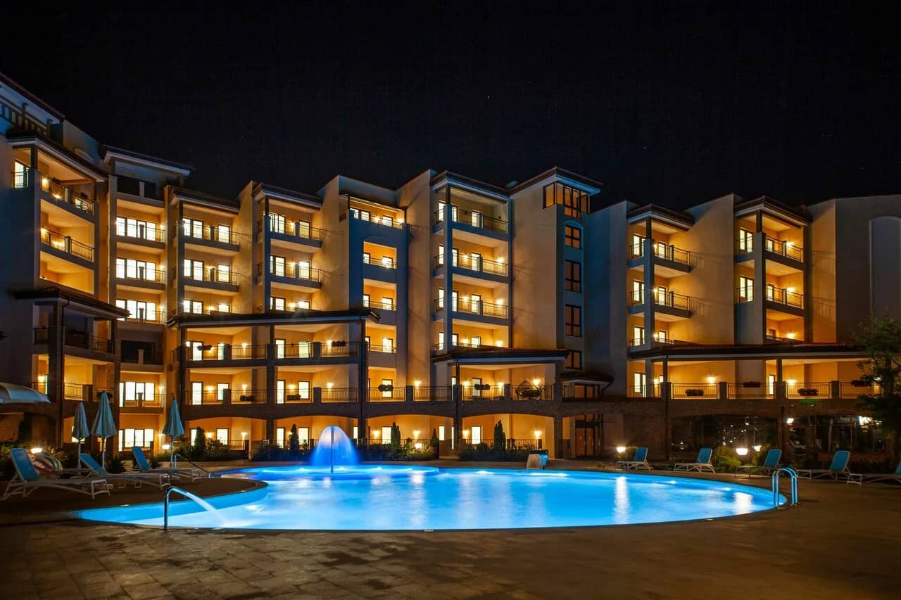 Инфраструктура на 15 ГА включает в семя 3 больших бассейна, 2 из которых круглогодичные. СПА центр на 4 000 кв.м. Медицинский центр, Торговый центр, собственную автобусную станцию и даже вертолётную площадку.