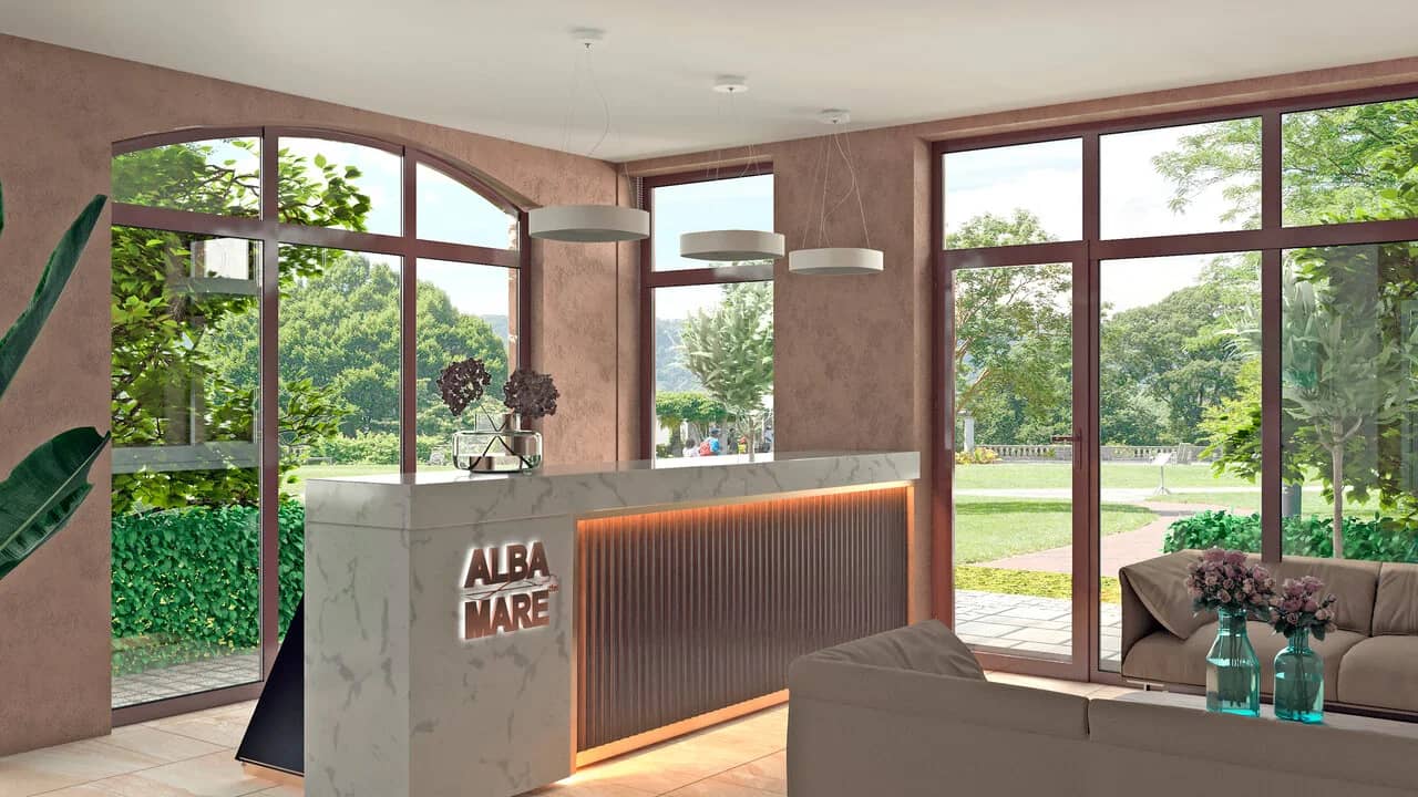 Alba del Mare - апартаменты бизнес-класса включают в себя 377 номеров: от студий в 34 кв. м до семейных двухуровневых апартаментов площадью до 204 «квадратов». 85% помещений – с видами на море. В составе инфраструктуры предусмотрены два открытых бассейна с подогреваемой водой, площадки для отдыха с шезлонгами, spa-салон, ресторан с открытой террасой, а также продуктовый магазин. На территории комплекса будут оборудованы детские площадки. Прилегающая закрытая и охраняемая территория будет благоустроена и озеленена по высоким стандартам курортной недвижимости.